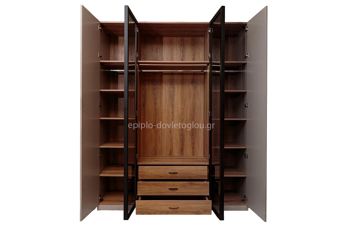 -Περιλαμβάνονται 3 ράγες στήριξης για κρεμαστά ρούχα ,3 εσωτερικά πατάρια και ράφια