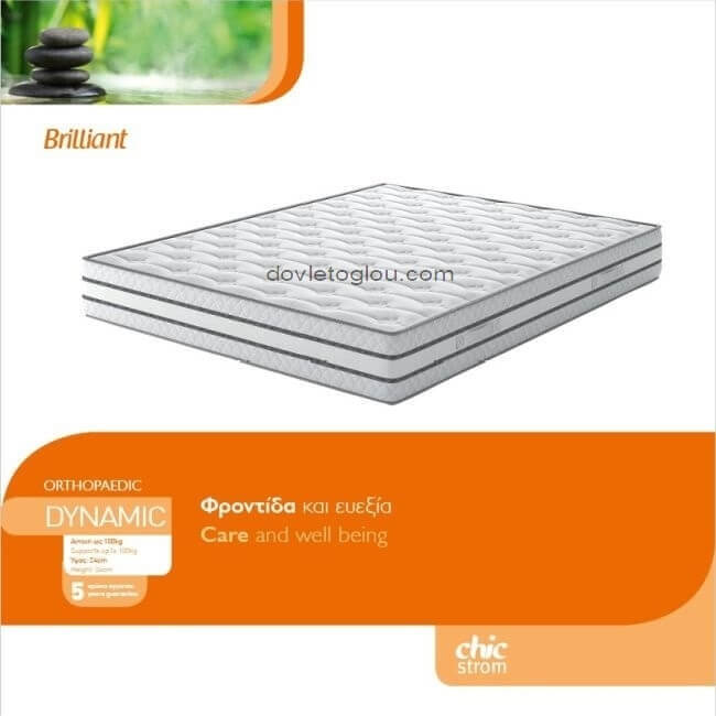 Η τήρηση των επιταγών της ορθοπεδικής αποτελεί κανόνα και οδηγό κατά την κατασκευή στρωμάτων στη Chic Strom. Το σύστημα ελατηρίων Bonnell που ενσωματώνεται στα στρώματα της σειράς Brilliant προσφέρει άνεση και στήριξη, ενισχύοντας την ανατομική συμπεριφορά του στρώματος. Εύκαμπτα και αφρώδη υλικά «αγκαλιάζουν» το σώμα και εξασφαλίζουν ανάπαυση και ευεξία κατά τη διάρκεια του ύπνου. Τα ημίσκληρα ή σκληρά στρώματα της σειράς προστατεύουν τα ευαίσθητα σημεία του σώματος, χαρίζοντας έναν ξεκούραστο ύπνο.